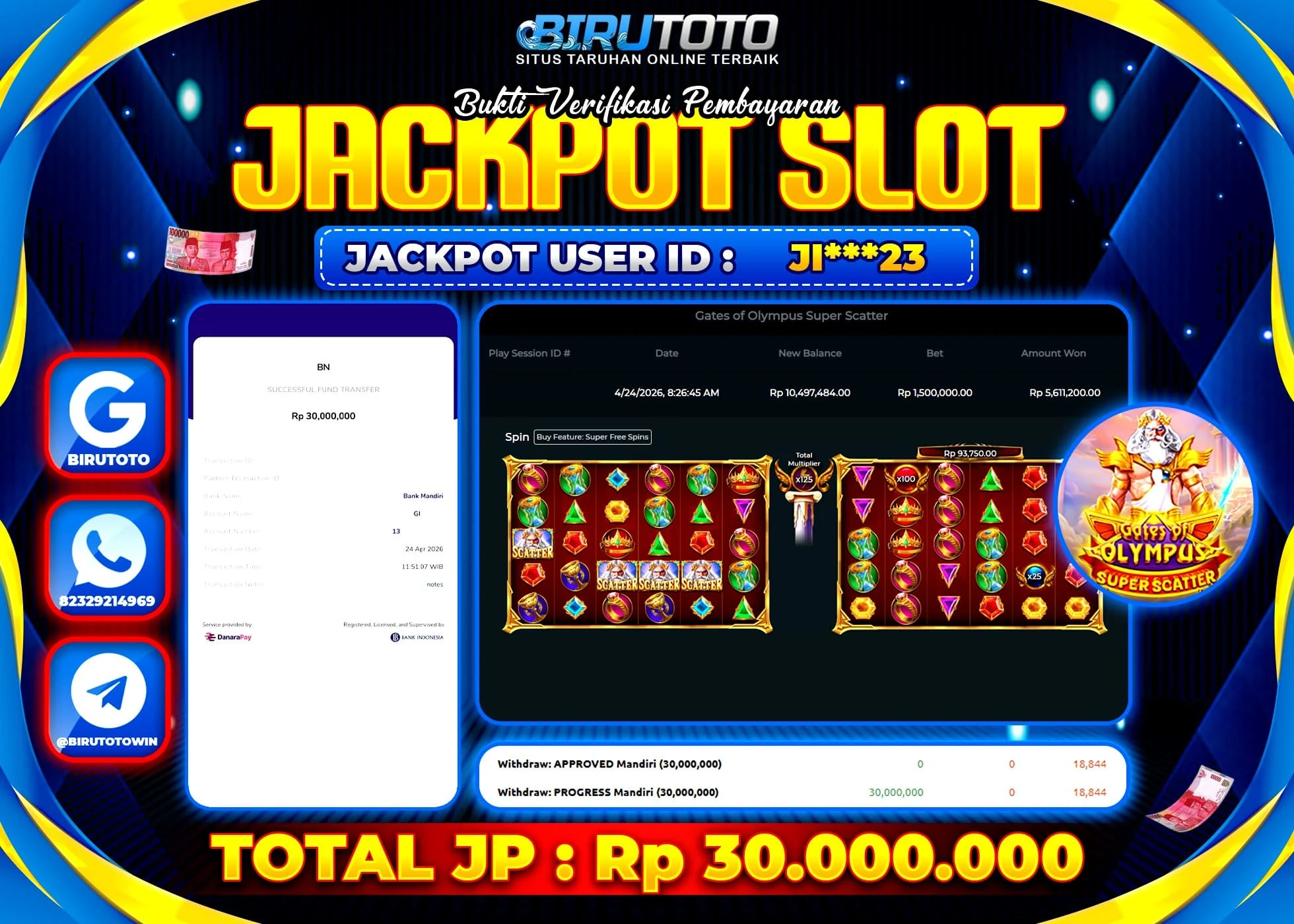 BIRUTOTO JACKPOT SLOT GATES OF OLYMPUS SUPER SCATTER Rp.30.000.000 LUNAS