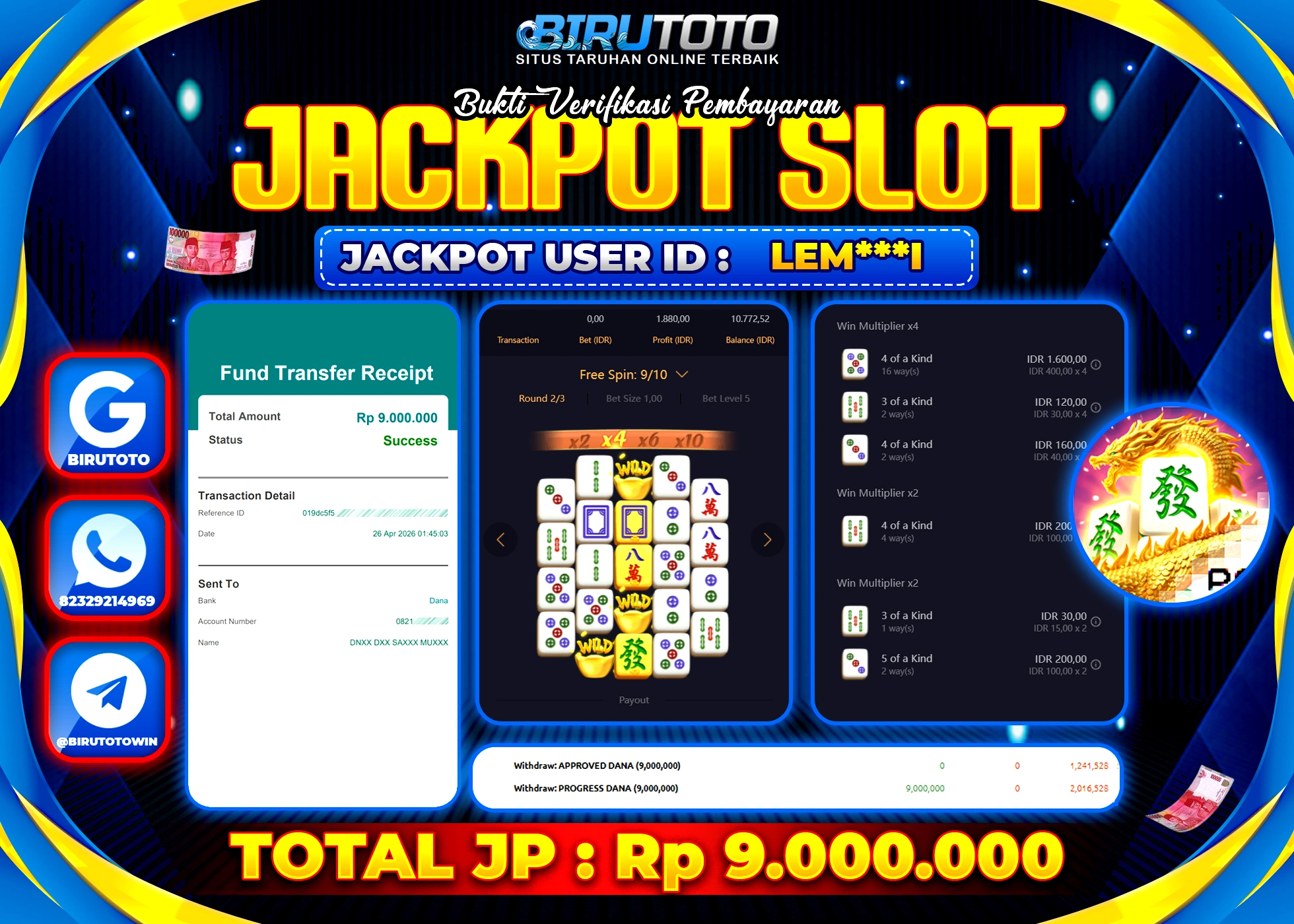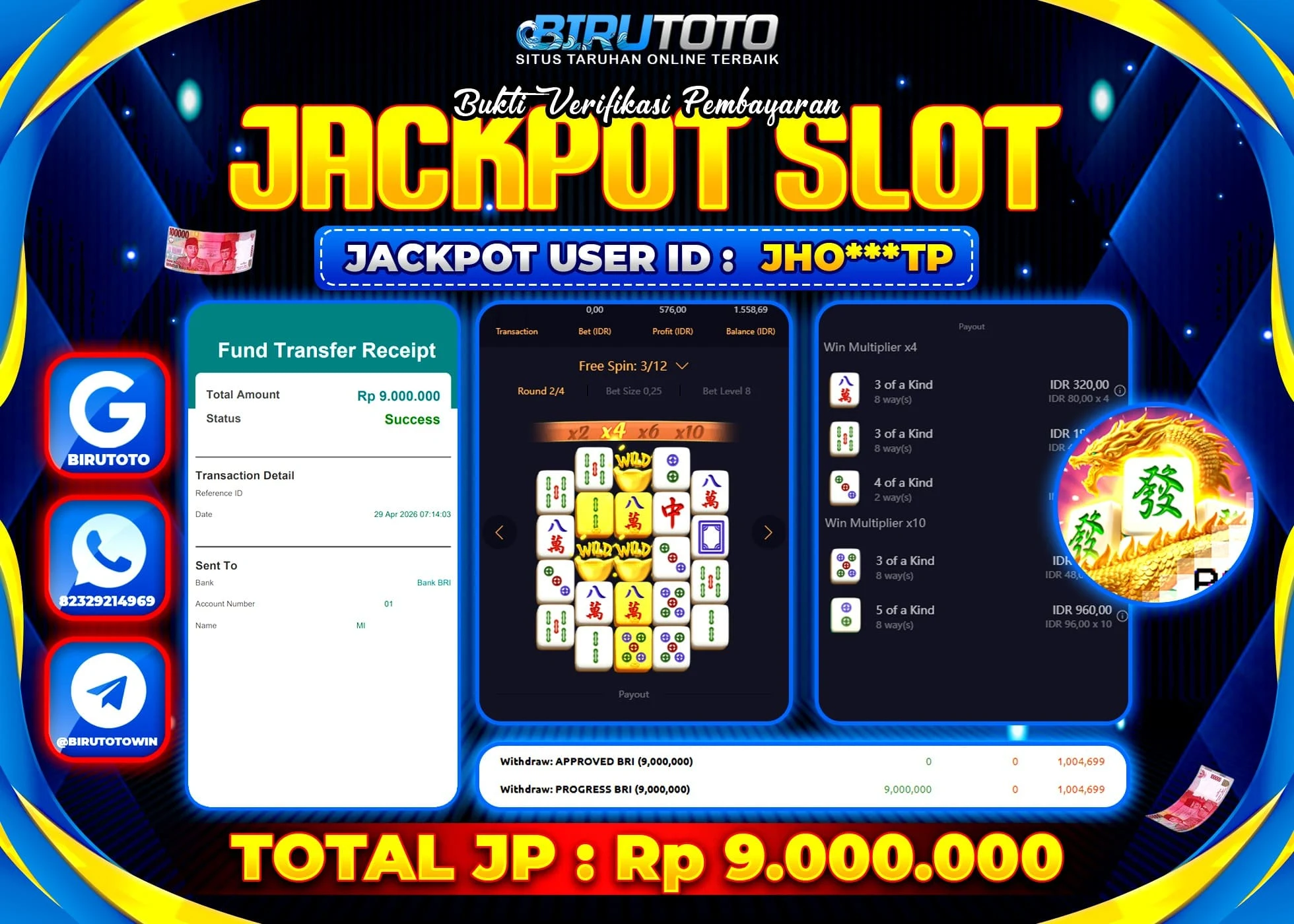 BIRUTOTO JACKPOT SLOT MAHJONG WAYS 2 Rp.9.000.000 LUNAS