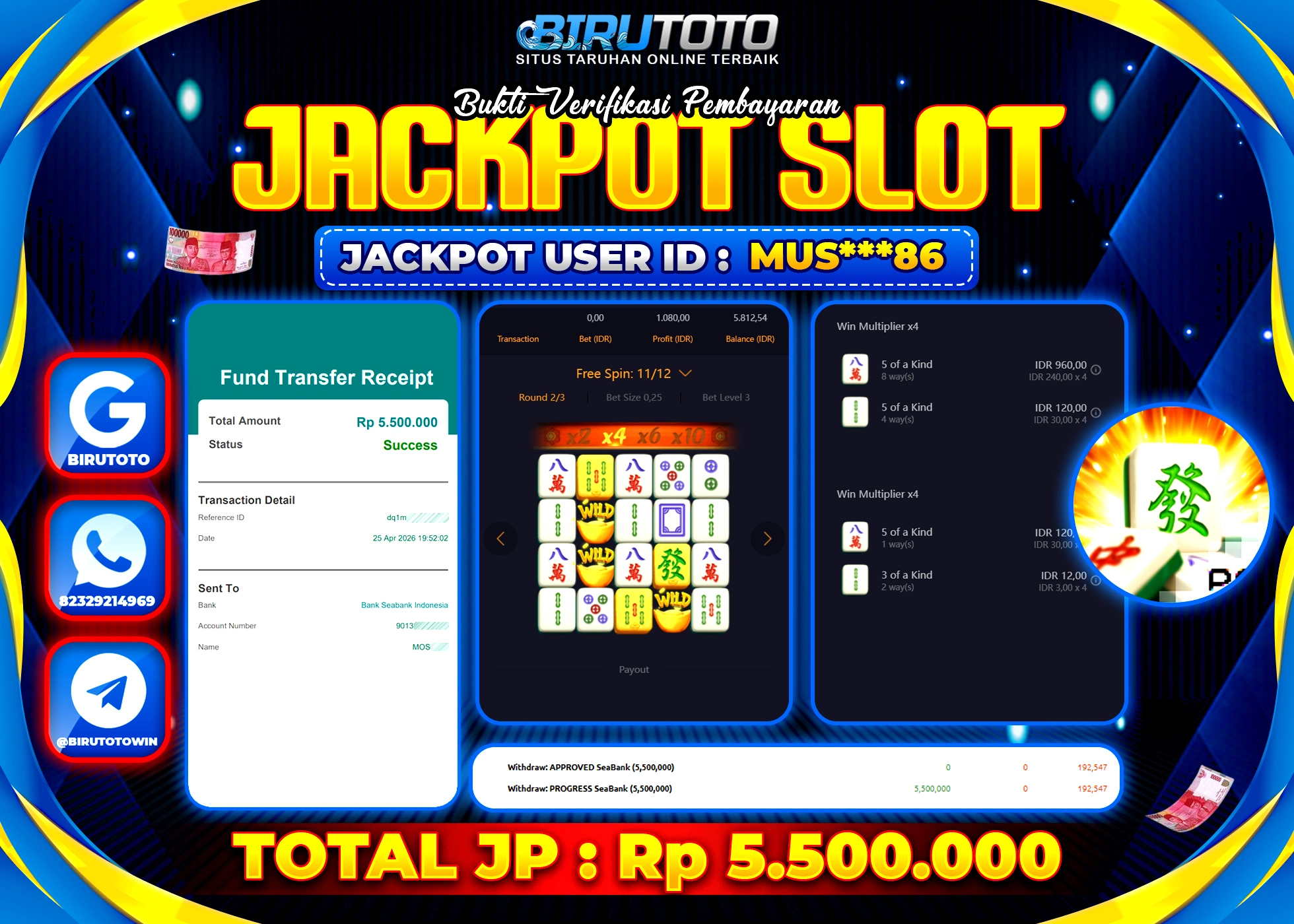 Selamat Kepada Member BIRUTOTO MUS***86 Telah Jackpot Di SLOT MAHJONG WAYS