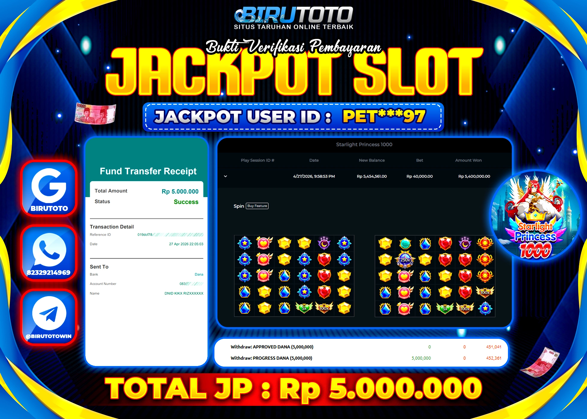 BIRUTOTO JACKPOT SLOT STARLIGHT PRINCES 1000 Rp.5.000.000 LUNAS
