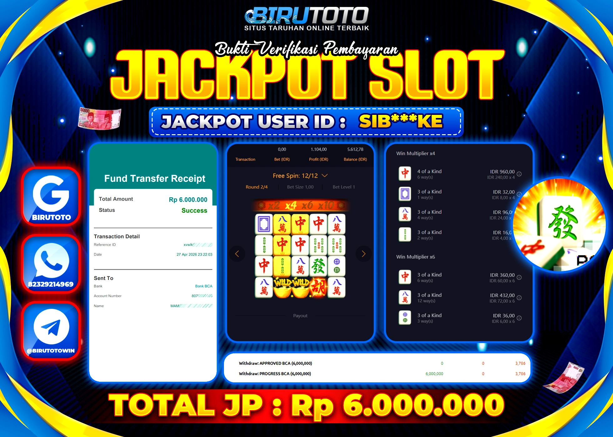 BIRUTOTO JACKPOT SLOT MAHJONG WAYS Rp.6.000.000 LUNAS
