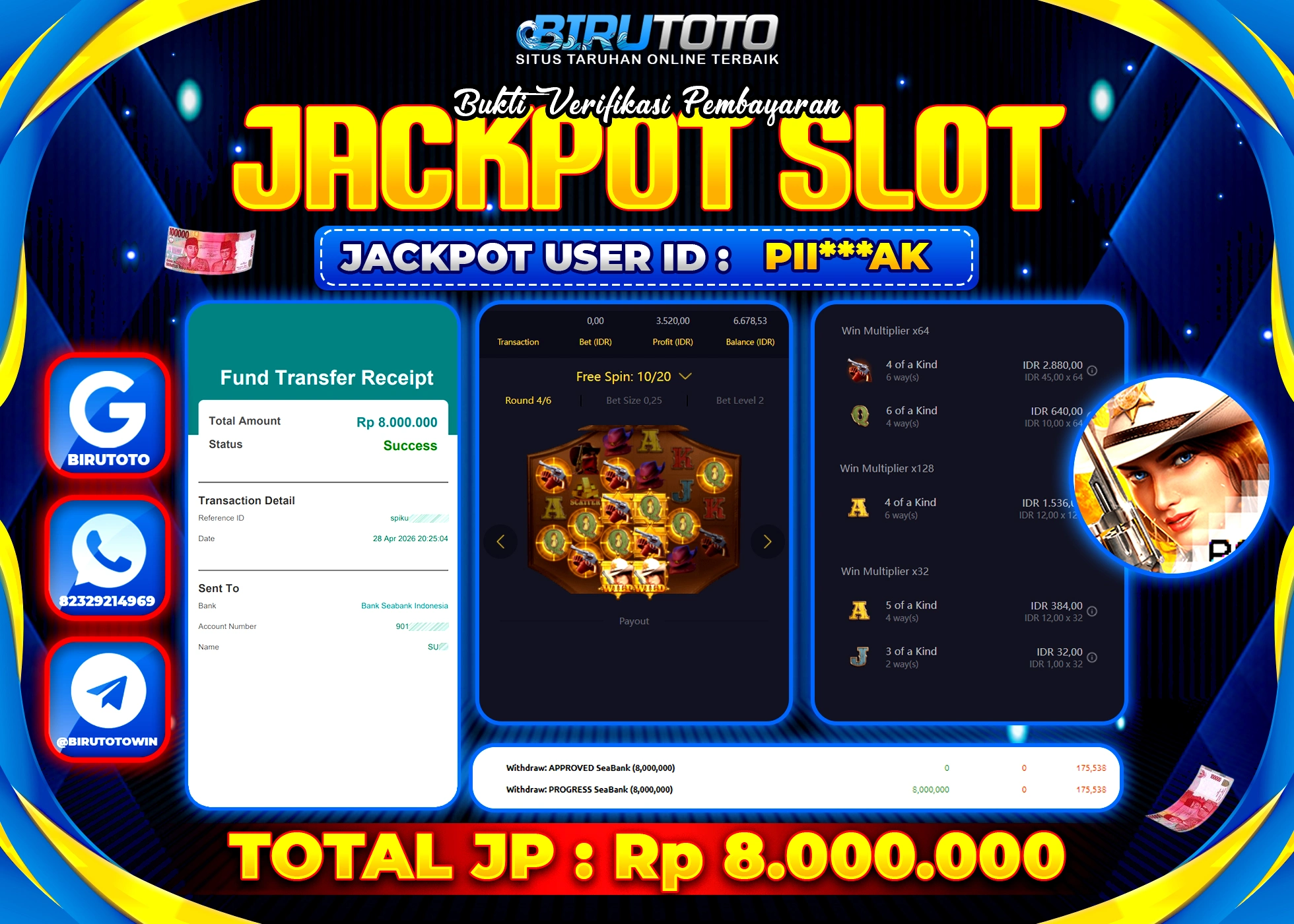 Selamat Kepada Member BIRUTOTO SOR***24 Telah Jackpot Di SLOT WILD BOUNTY SHOWDOWN