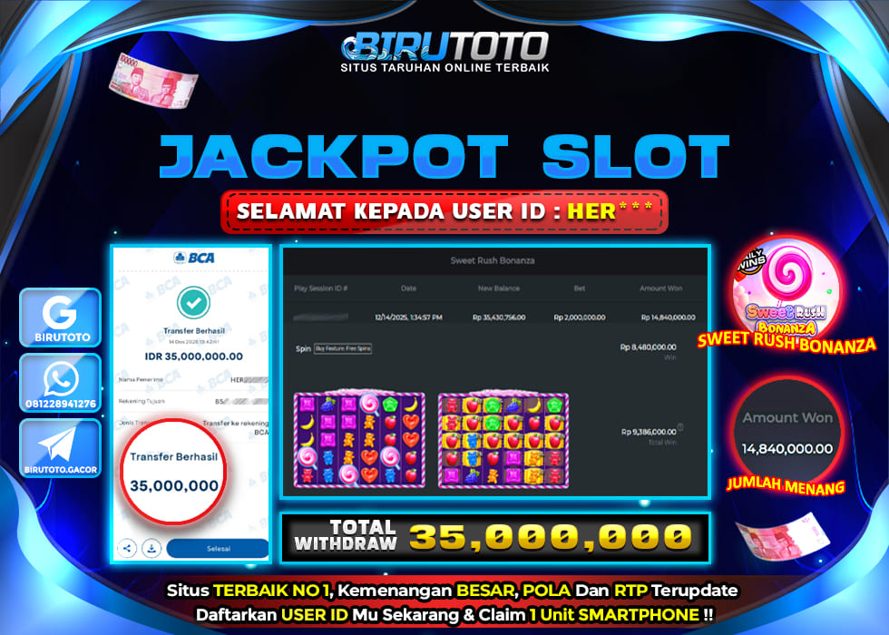 BIRUTOTO JACKPOT SLOT SWEET RUSH BONANZA Rp.35.000.000 LUNAS