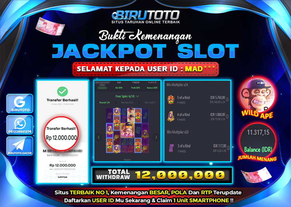 BIRUTOTO JACKPOT SLOT WILD APE #3258 Rp.12.000.000 LUNAS