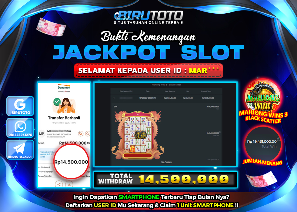 BIRUTOTO JACKPOT SLOT MAHJONG WAYS Rp.14.529.000 LUNAS