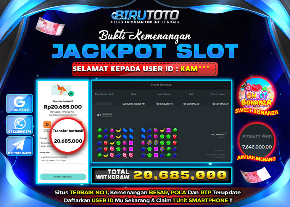 BIRUTOTO JACKPOT SLOT SWEET BONANZA Rp.20.685.000 LUNAS